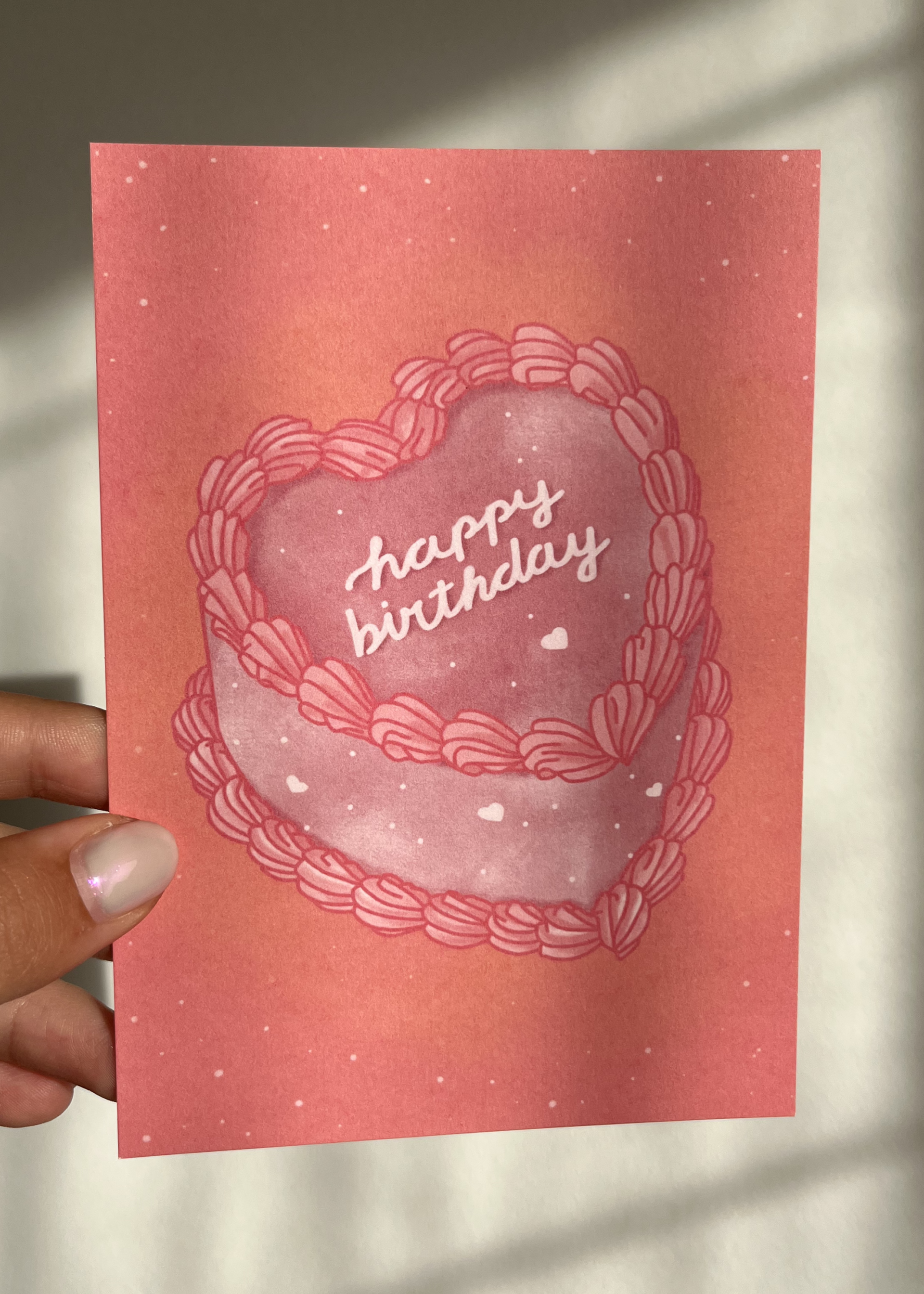 Vier een verjaardag in stijl met dit vrolijke kaartje met kleurrijke verjaardagstaart! Perfect om iemand op een originele manier te feliciteren.